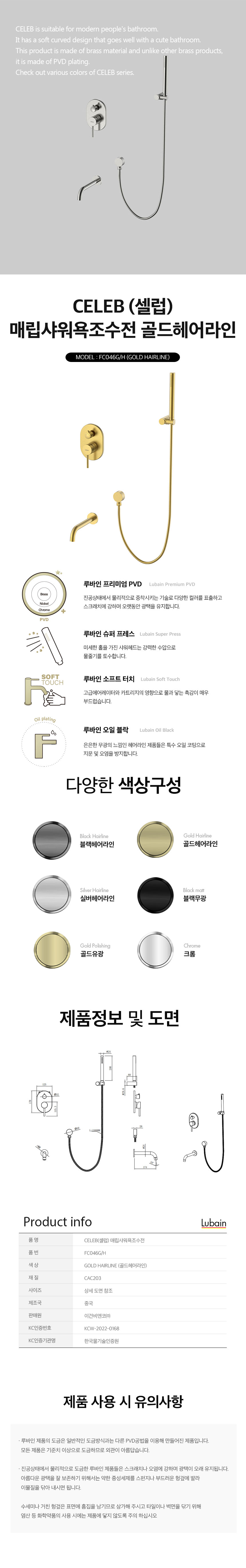 - home > PREMIUM 수전 > 욕실벽용 수전 > 매립형 > [루바인] 매립형 샤워 욕조 수전 셀럽 FC046G/H 골드 헤어라인